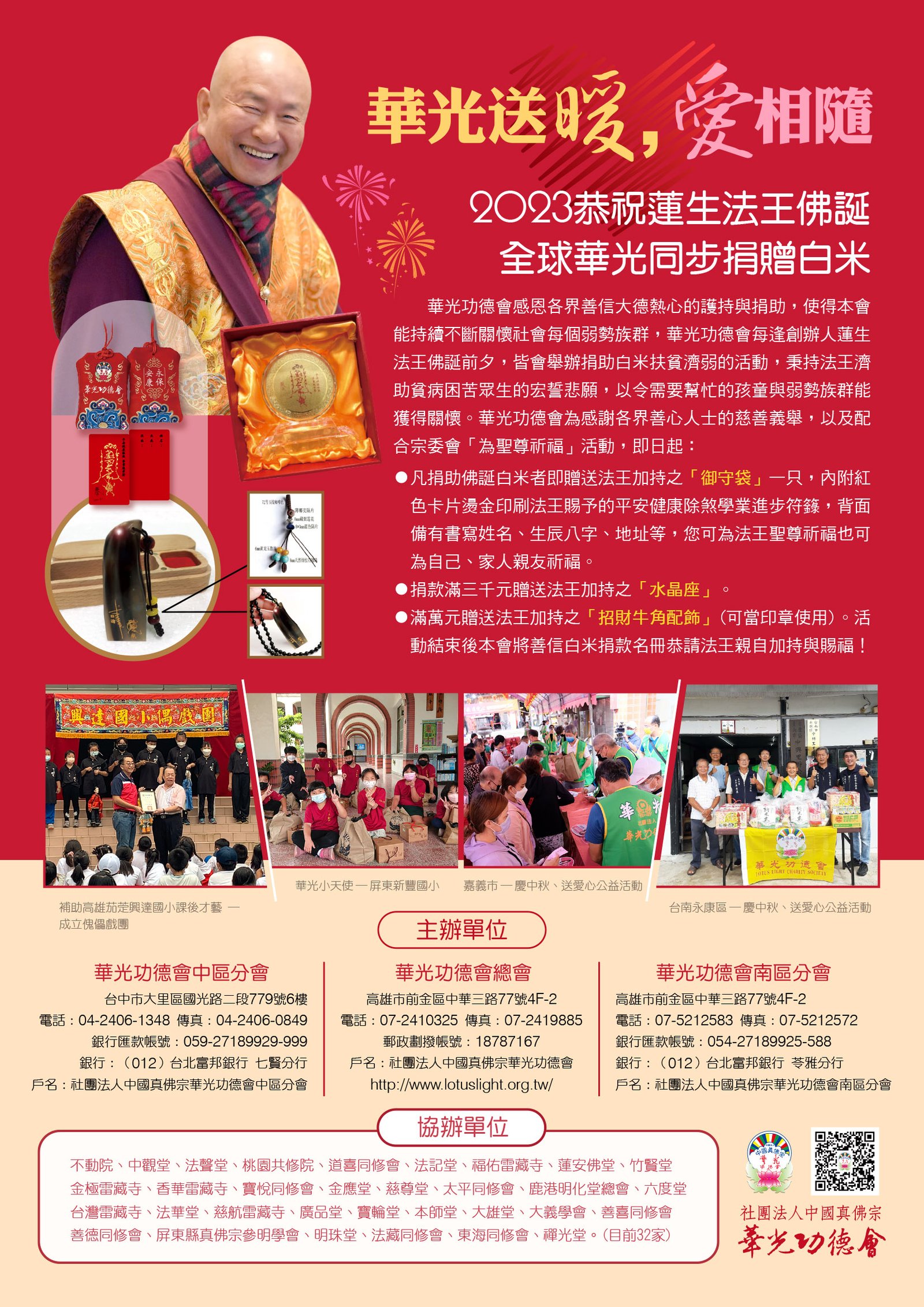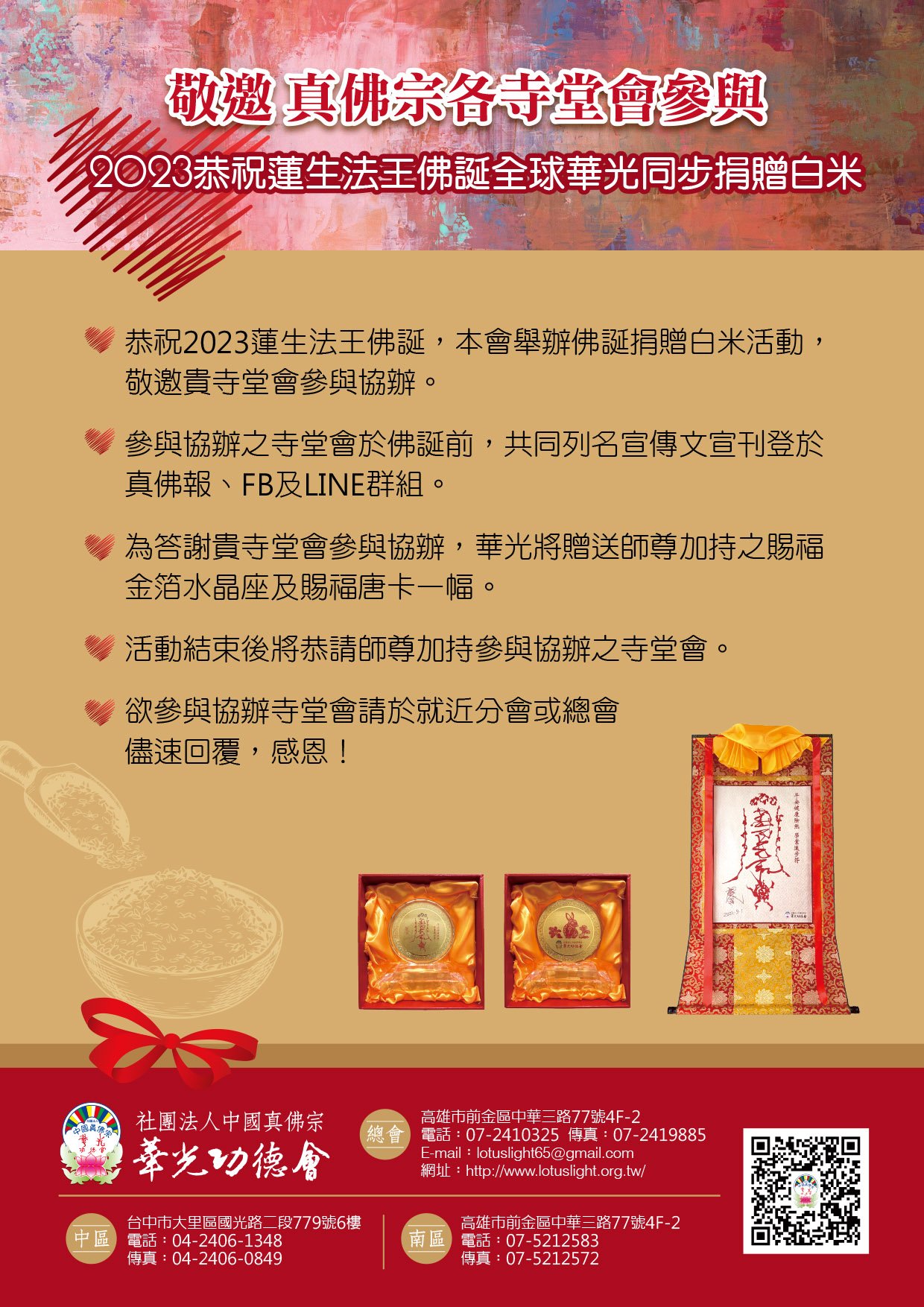 華光事蹟 回最新消息 敬邀真佛宗各寺堂會參與2023恭祝蓮生法王佛誕捐贈白米活動 恭祝2023蓮生法王佛誕,本…