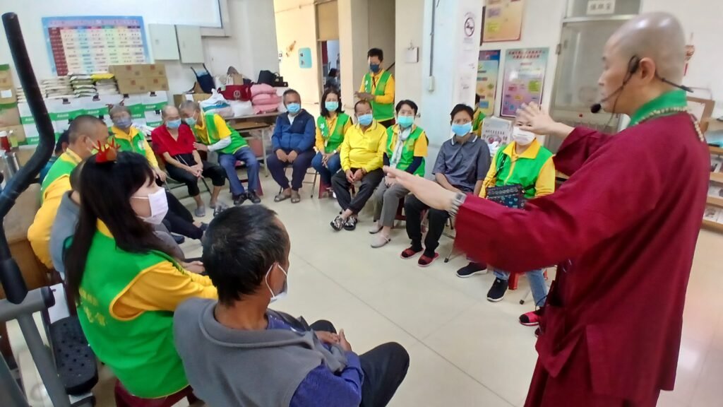 在活動中,教授師引導眾人透過世界地圖,回顧2025年全球發生的重大天災人禍。根據統計,一年365天中,被記錄的大型災難竟高達260件,平均不到兩天就發生一次嚴重的自然災害,諸如:地震、颱風、水災、森林大火、火山爆發、龍捲風、山崩等。從佛教觀點來看,這些現象正深刻體現了「人生無常」與「成住壞空」的真理。教授師也提到「鏟子超人」在花蓮受災區挖掘土石、幫助災民重建家園的感人照片,感謝大家在面對他人的苦難時,也能夠發起「無緣大慈,同體大悲」的心念,以念佛方式回向給受災人員,以此善念與眾生結善緣。透過對災難的省思,讓夥伴們更懂得珍惜當下的平安,並將這份感恩轉化為佈施的力量。