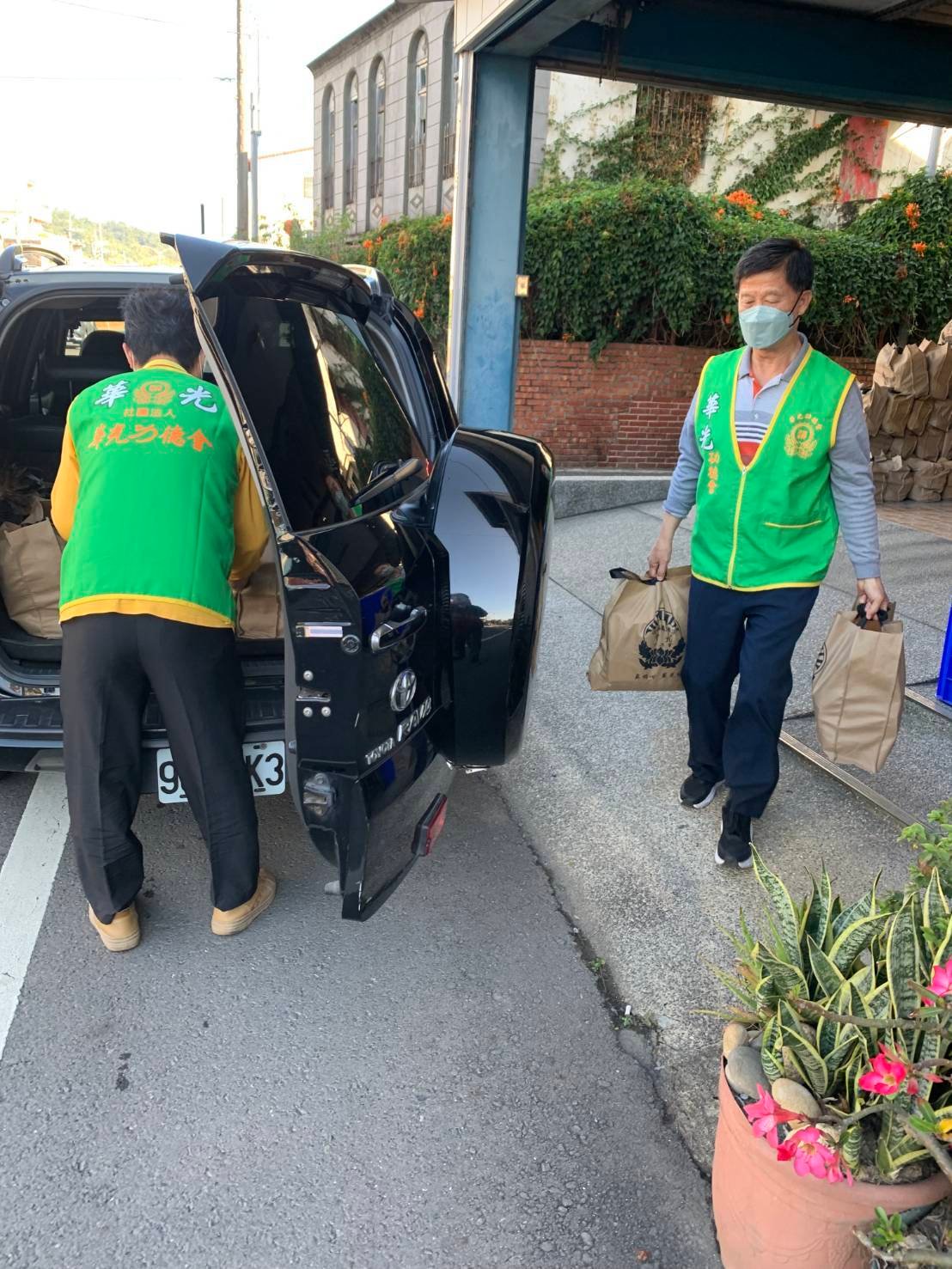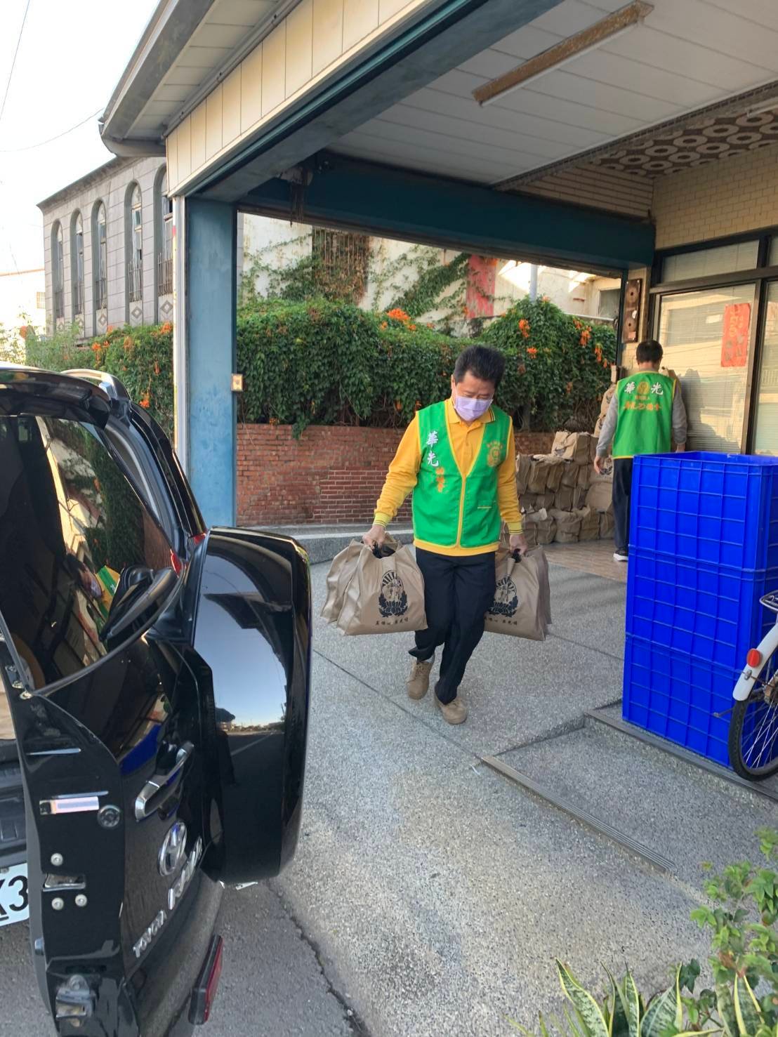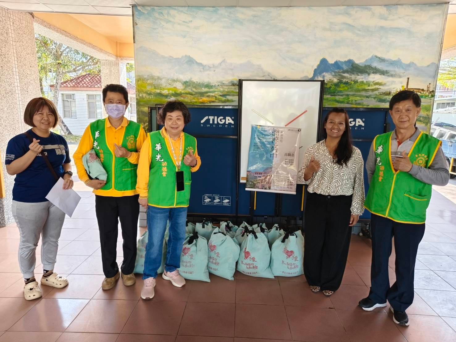 當天,由李明村校長、黃柏皓會長與龔素節師姐、陳世良師兄親力親為,一早便開始忙碌地整理、搬運物資。從車廂將一袋袋沉甸甸的物資接力搬出,志工們不辭辛勞的來回穿梭,每一滴汗水都蘊含著對孩子們的深深關懷。