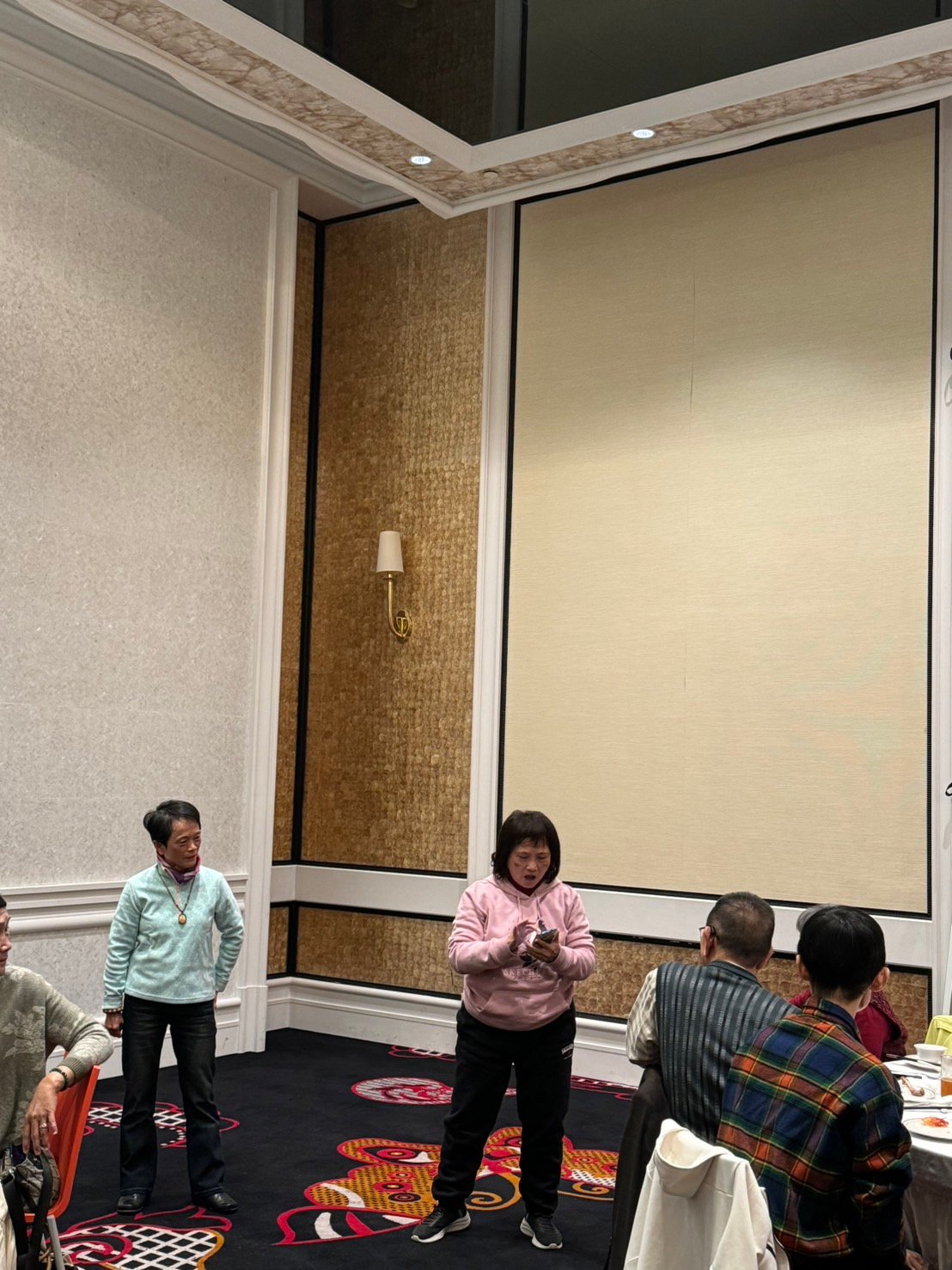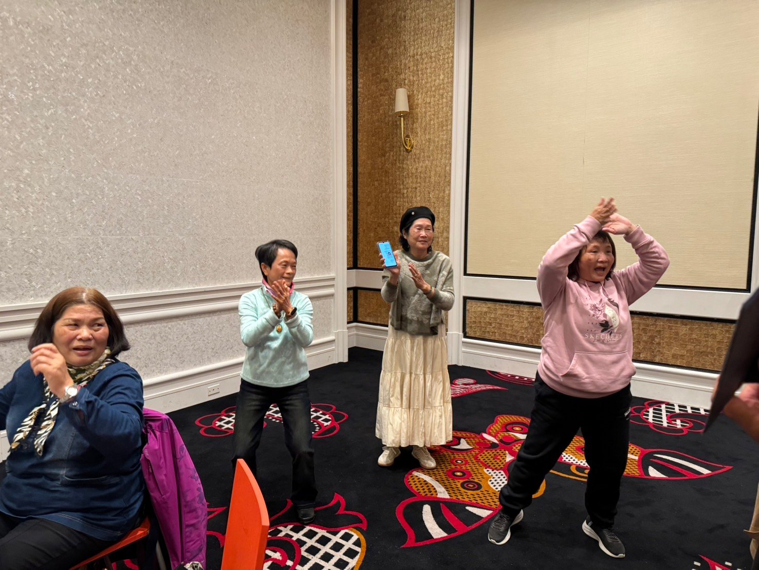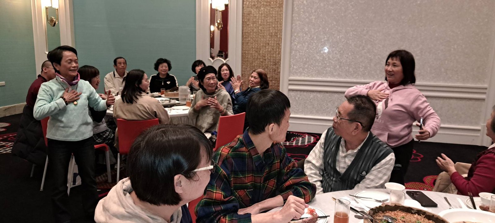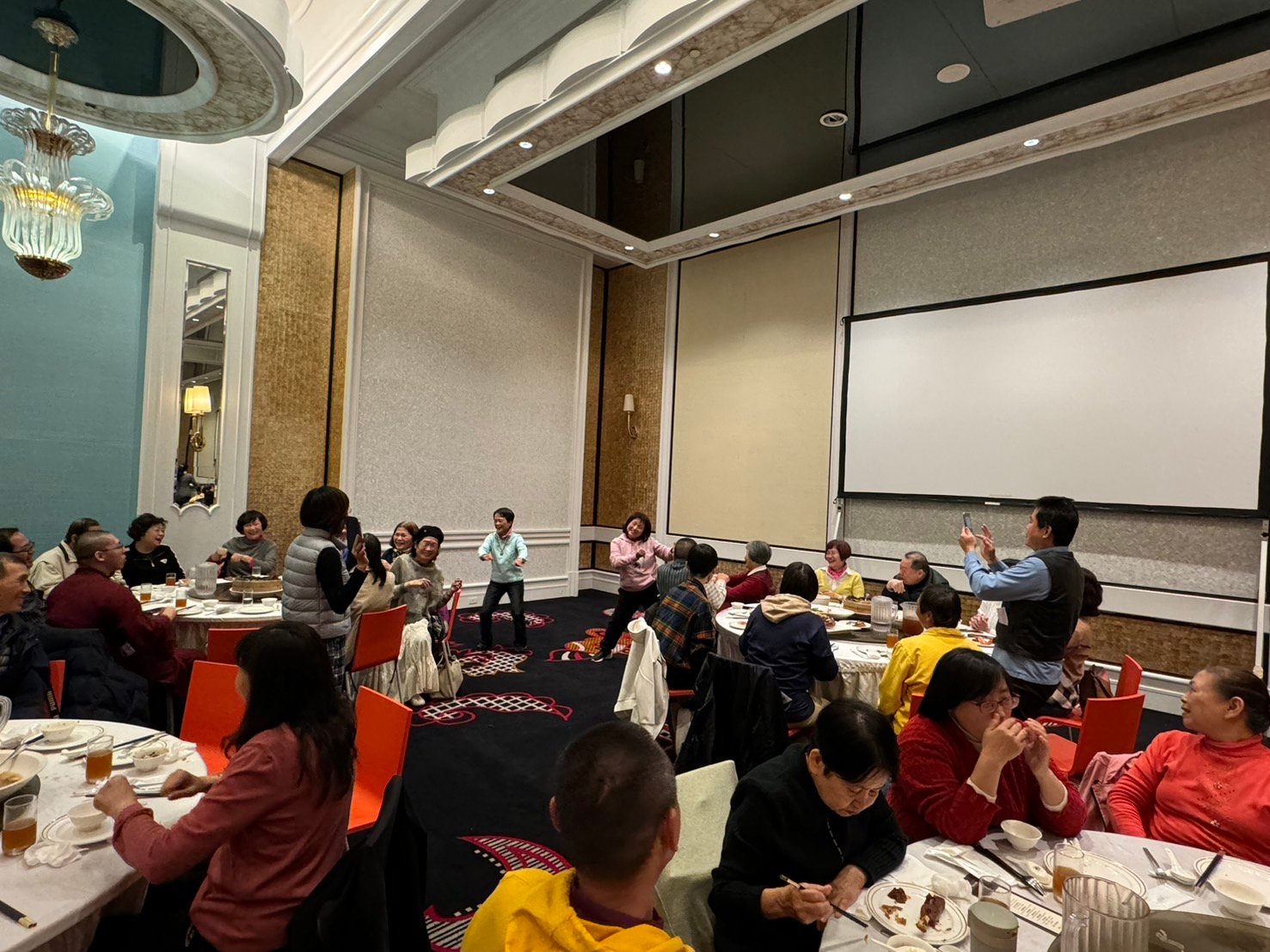 餐會中,秋玲師姐為大家帶來今年爆紅的洗腦神曲-APT,師姐活力四射的舞蹈,帶動餐會歡樂熱鬧的氣氛。