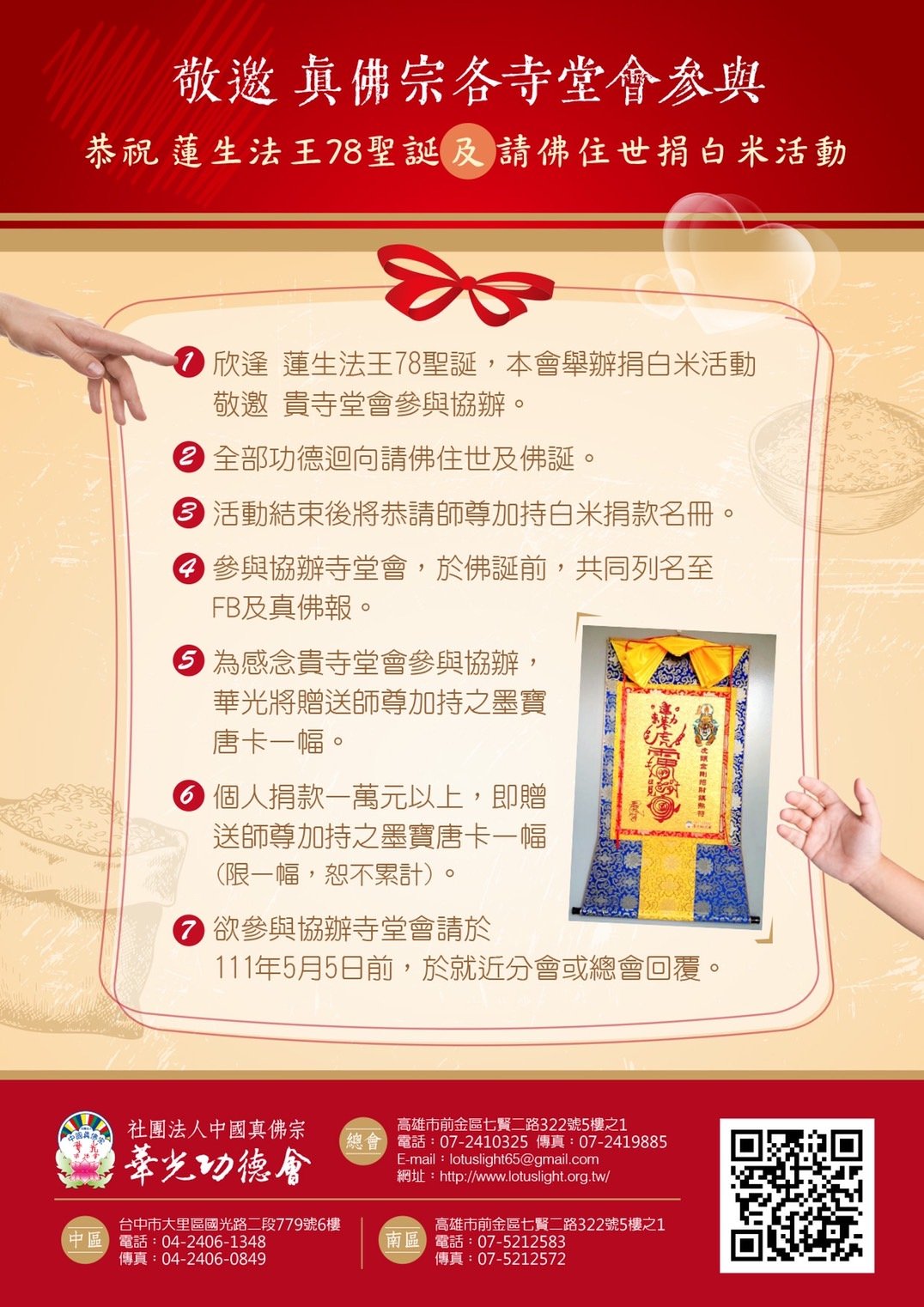 恭祝 蓮生法王78聖誕及請佛住世捐助白米活動