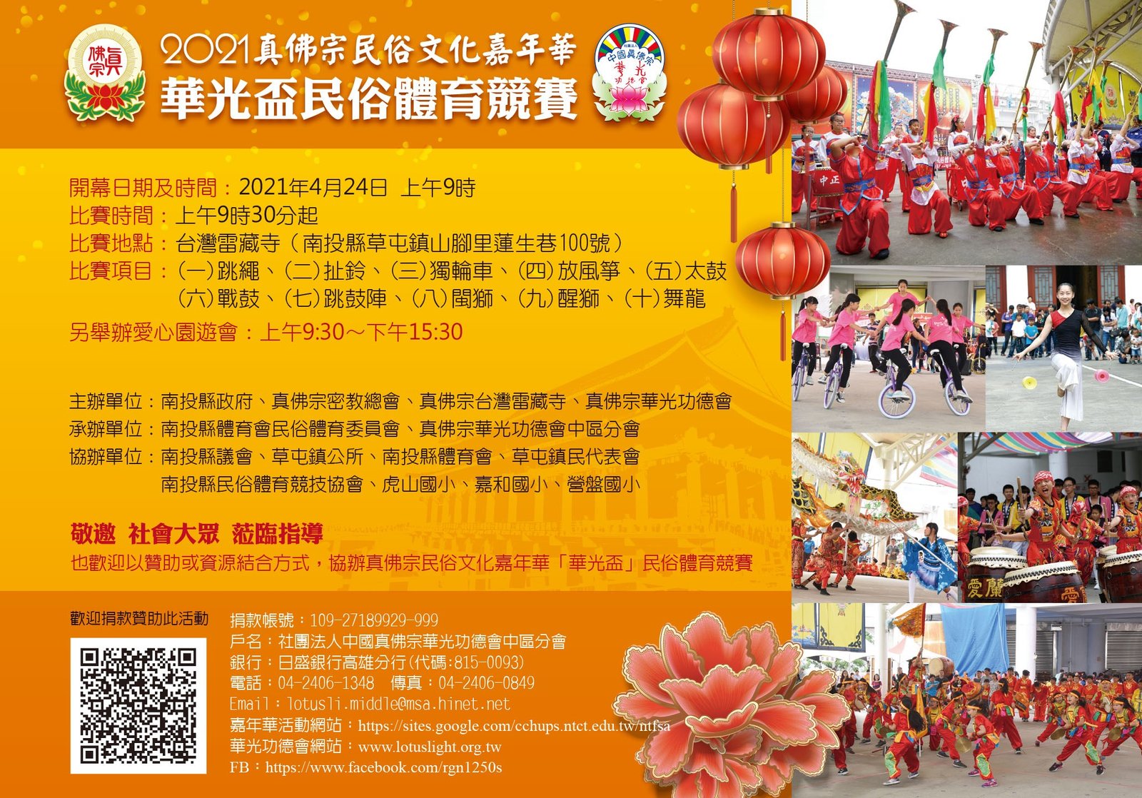 華光事蹟 回最新消息 2021真佛宗民俗文化嘉年華-華光盃民俗體育競賽於2121/04/24上午9:30在南投…